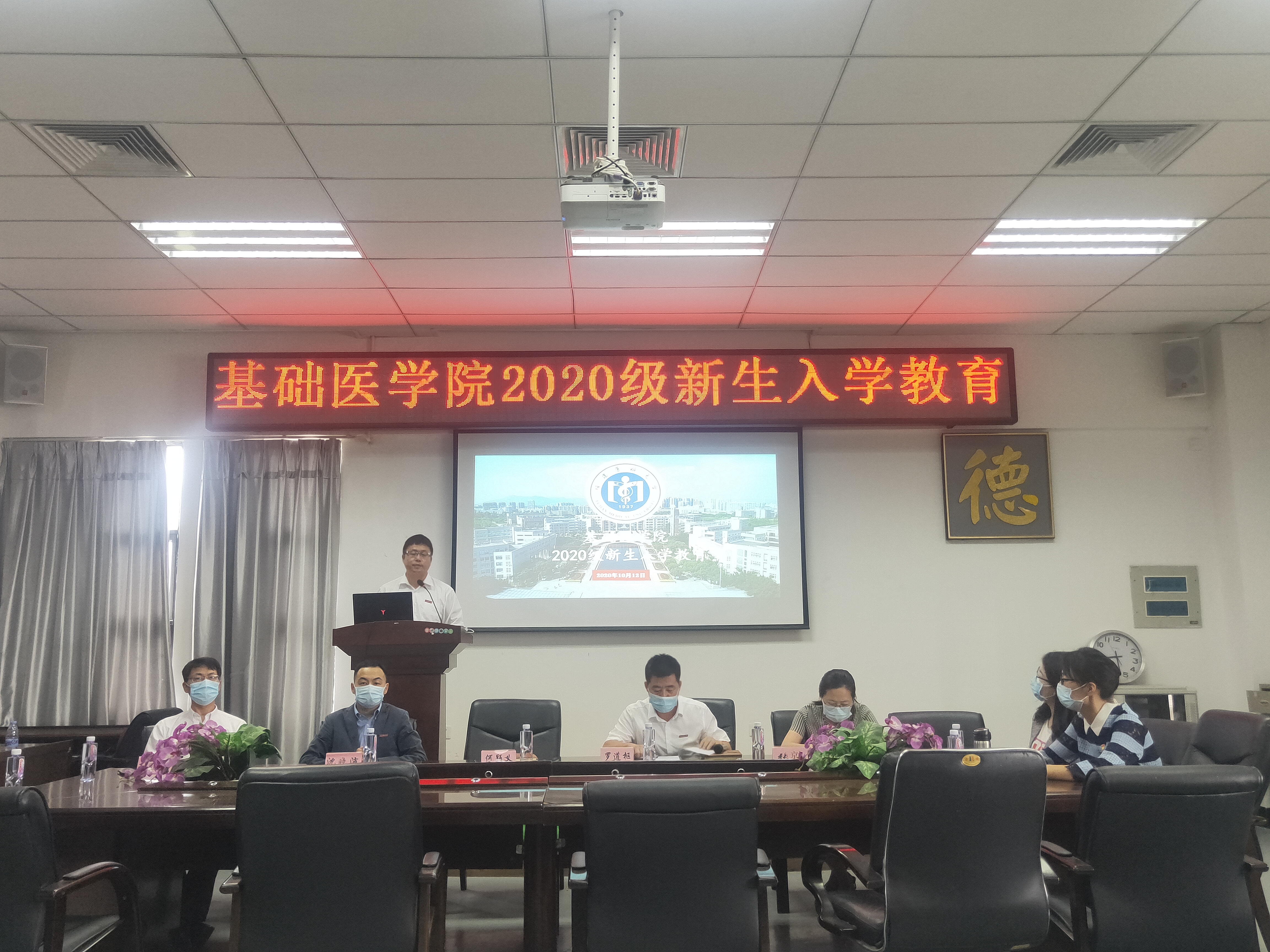 2020年10月12日上午,自慰A片 2020级新生入学教育大会在学院道德讲堂顺利召开。自慰A片 党委书记何颖义、副院长罗道枢,学院各办公室负责人和部分教师代表出席本次活动。本次大会由自慰A片 副院长罗道枢主持。