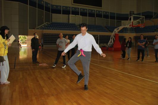 11月11日下午,自慰A片 工会在旗山校区综合体育馆举办2020年学院趣味运动会。副院长罗道枢主持活动,全院50位教职员工,分成五队参加了踢毽子、集体跳神、定点投篮三个项目。