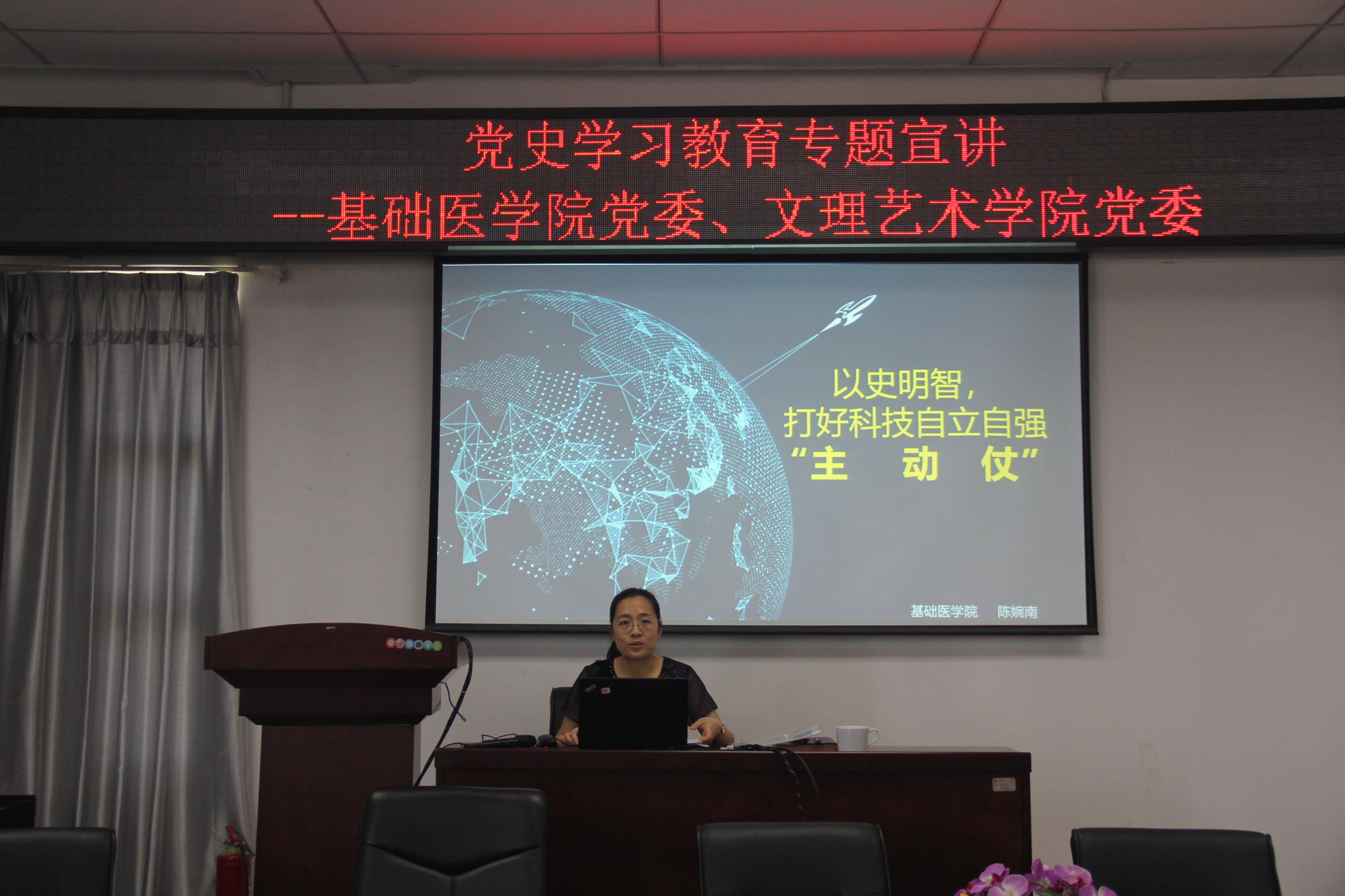 5月26日上午,自慰A片 、文理艺术学院联合开展党史学习教育专题宣讲,自慰A片 、文理艺术学院师生代表60余人听取了讲座。