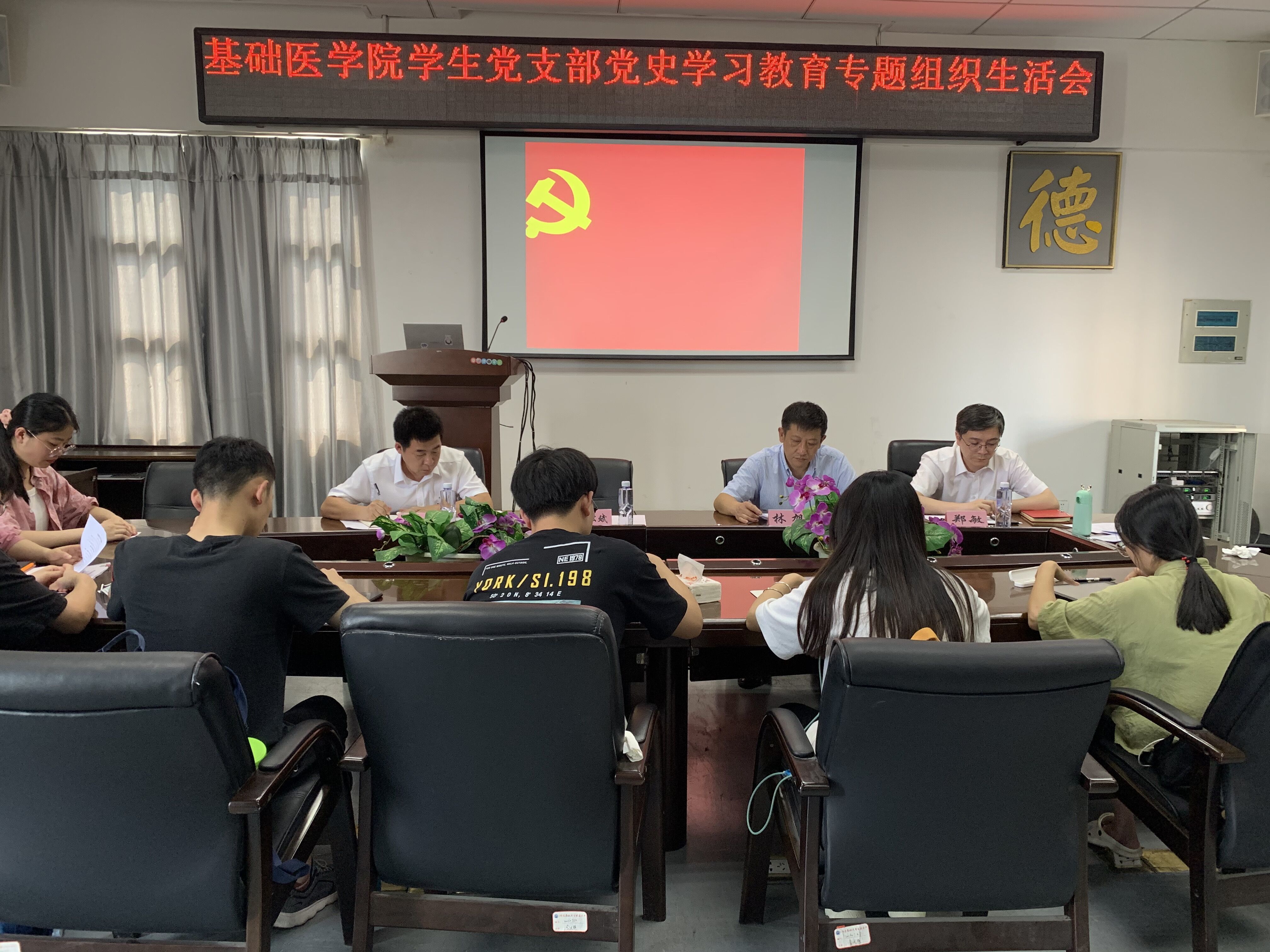 2021年7月14日下午,自慰A片 学生党支部召开党史学习教育专题组织生活会。会议由支部书记任秀琼主持,副校长林旭、院党委副书记郑敏、副院长罗道枢莅临指导,支部全体党员与会。