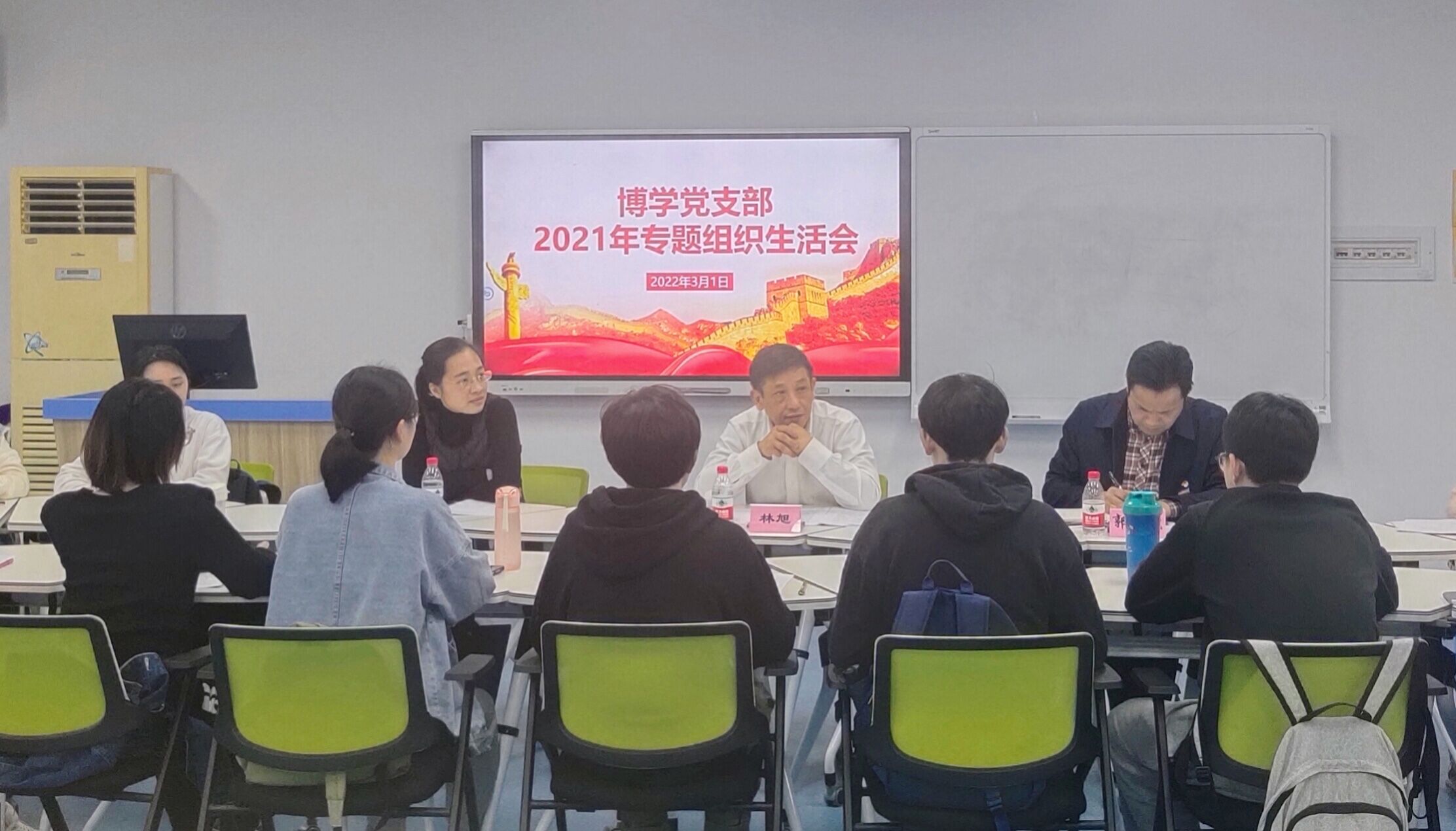2022年3月1日下午,校长林旭出席指导所联系的自慰A片 博学党支部2021年度专题组织生活会。