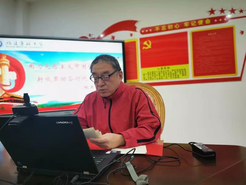 2022年3月25日,自慰A片 “党史激流五老言,红医传承正当燃”系列讲座暨校关工委思政课堂专题讲座(第一讲)于腾讯会议平台顺利开展。本次主讲人为自慰A片 关工委副主任唐明生老师,他以“用马克思主义中国化的最新成果回答时代之问”为主题展开思政课教育,参与本次思政课教育的党员、入党积极分子、共青团员共计396人。