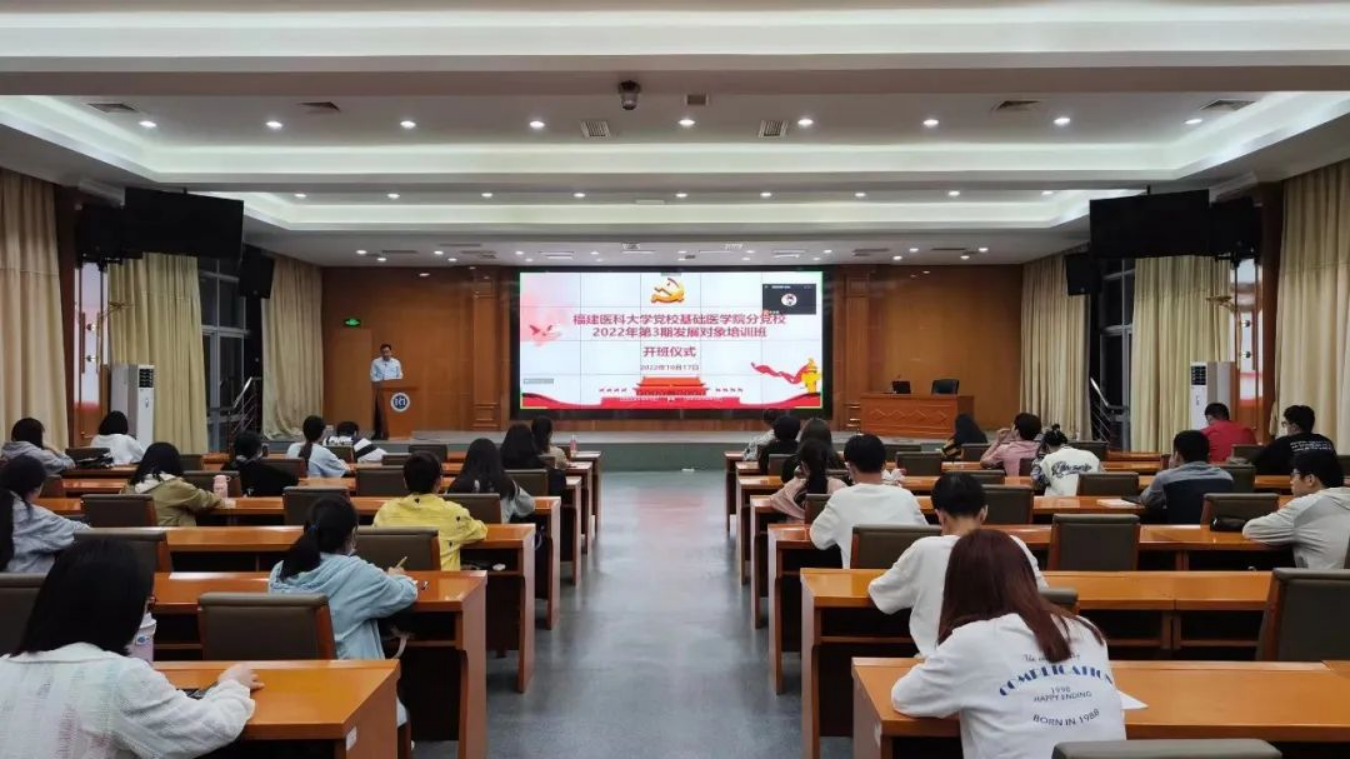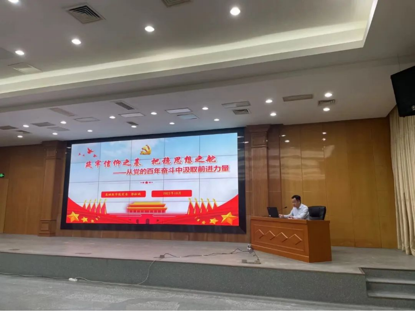 10月17日,自慰A片 于行政楼B座学术报告厅,举行2022第3期党员发展对象培训班开班仪式。学院党委书记郭松斌为大家做动员讲话,来自自慰A片 、卫生管理学院、健康学院、文理艺术学院共计48名师生参加开班式。