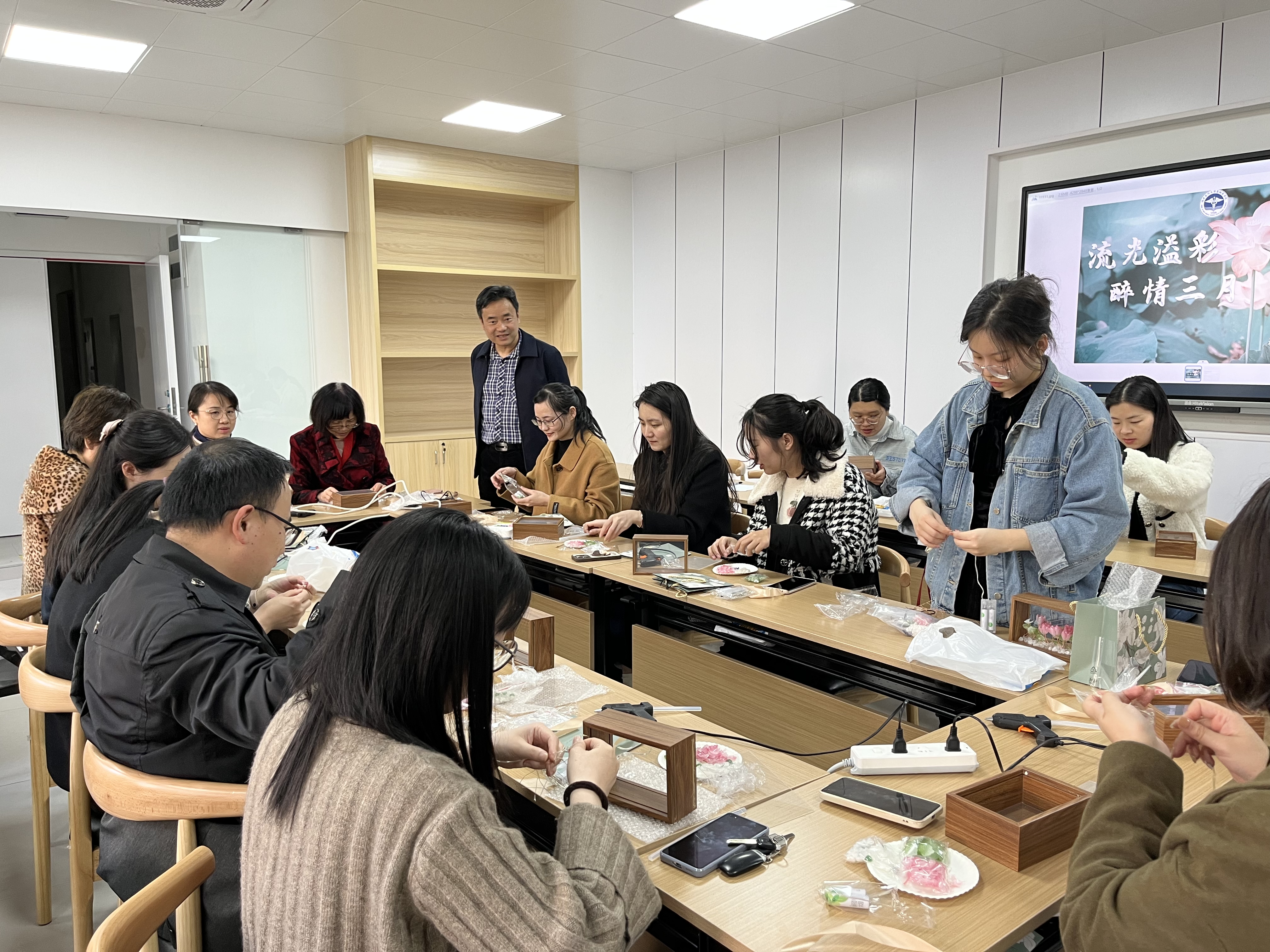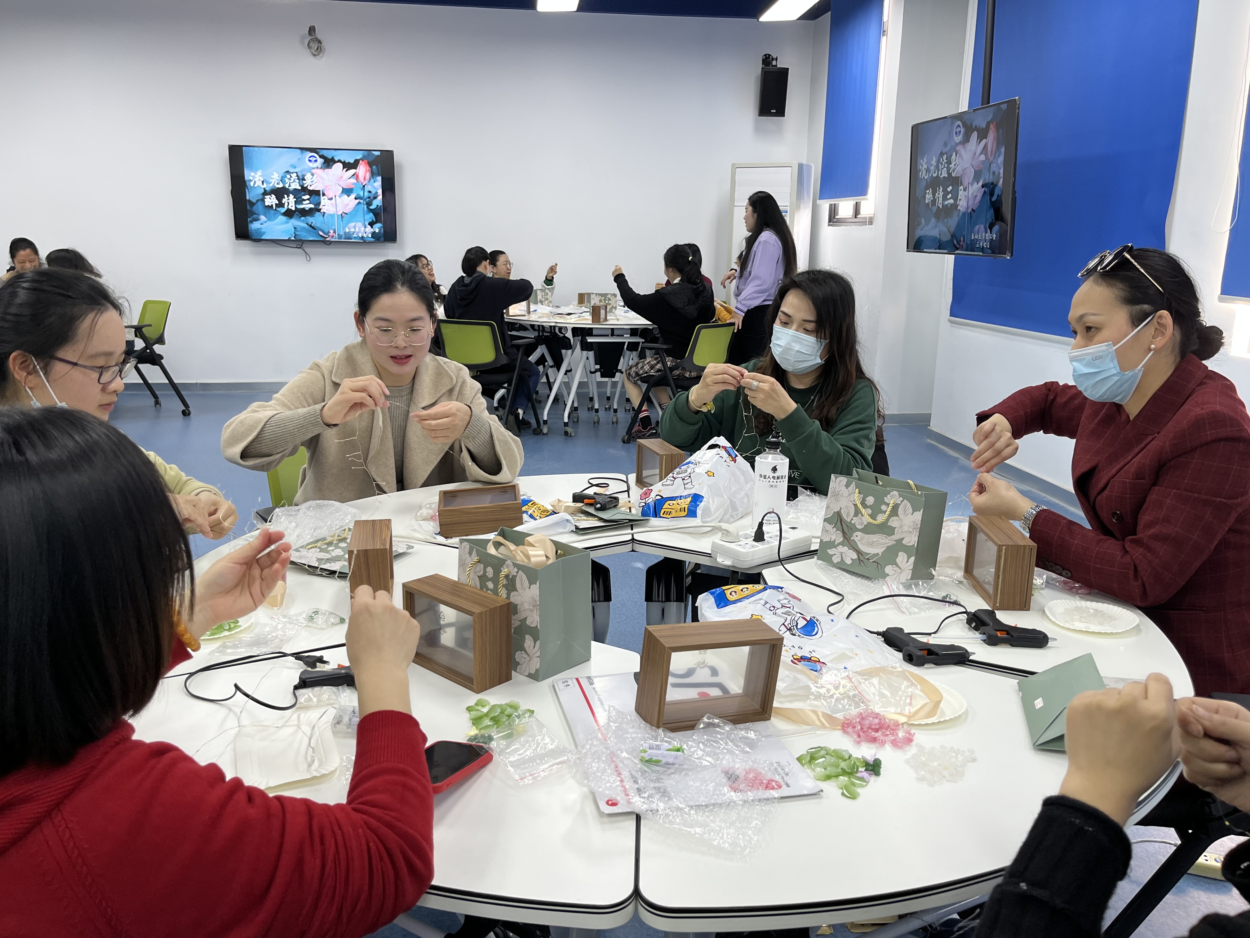 为庆祝2023年三八国际妇女节,自慰A片 工会于2023年3月7日下午在上街校区3号楼智慧教室307,开展了“流光溢彩,醉情三月”手工制作活动,学院60余名教师员工参加了此次活动。活动现场,大家手工制作了精美的莲花灯,活动氛围轻松和谐,充分展现学院师生员工健康向上的精神面貌。
