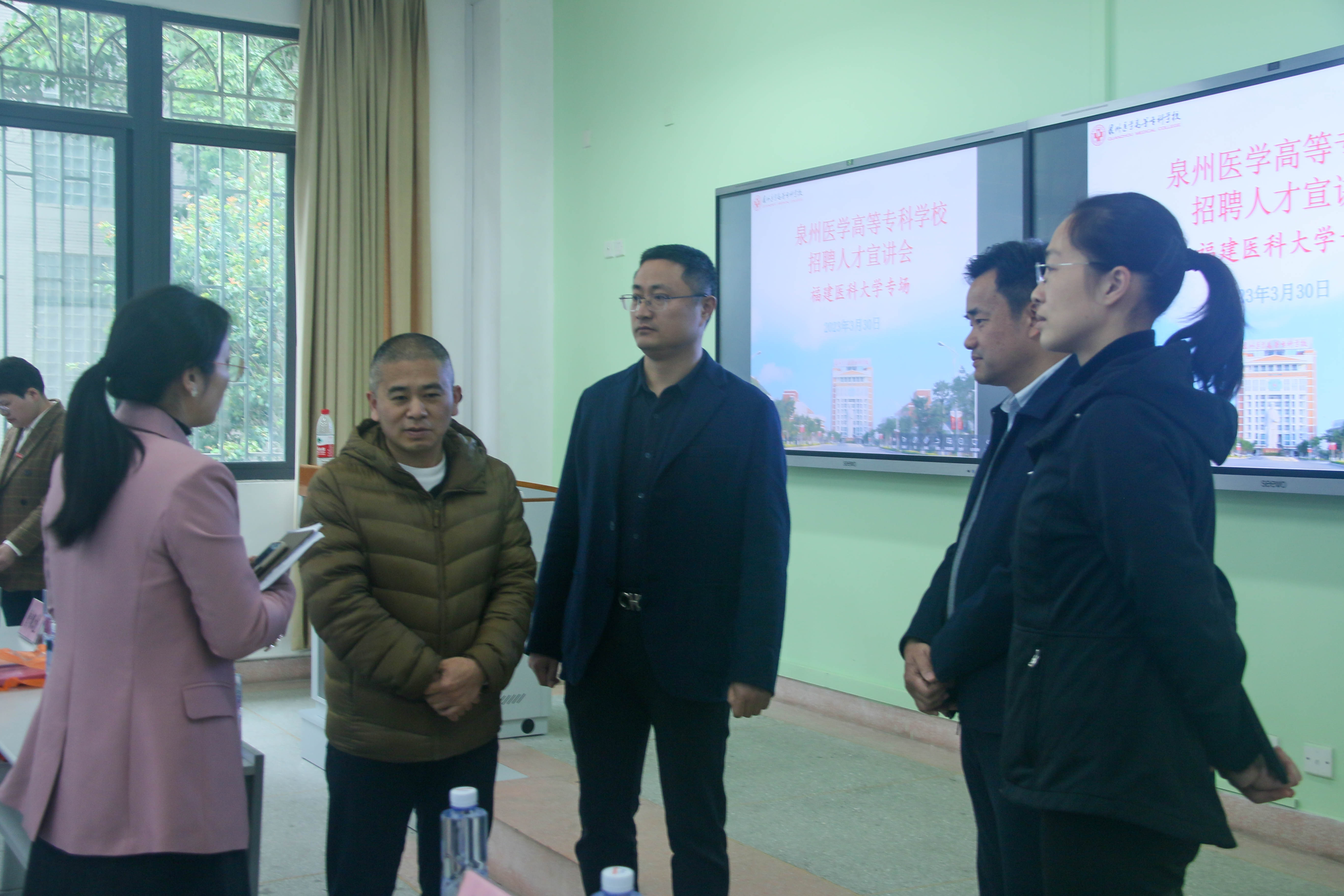 据悉,泉州医学高等专科学校此次来校进行宣讲和招聘,由学校人事处主持工作负责人王世安带队,人事处和基础医学部等单位领导同行参加,共为我校毕业生提供了近50个工作岗位。宣讲之后,毕业生与用人单位就岗位职责要求等进行广泛、深入交流。