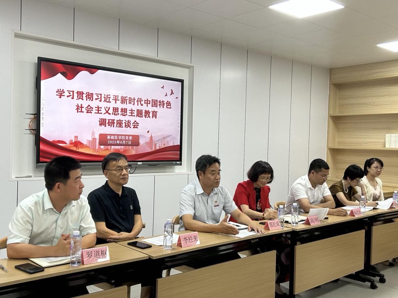 为深入落实党中央关于学习贯彻习近平新时代中国特色社会主义思想主题教育的重大部署和大兴调查研究的重要要求,更好了解广大学生对自慰A片教育教学、管理服务等方面的意见和建议,进一步提高自慰A片教学管理服务水平和教学质量,2023年6月7日下午,基础医学院于6号楼212学生活动室召开学习贯彻习近平新时代中国特色社会主义思想主题教育调研座谈会暨2022-2023学年下学期学生代表座谈会。学院领导班子、校院两级督导、教科办及学工办负责人、各学系/中心主要课程负责人和各专业年级同学代表近40人参加调研座谈会。