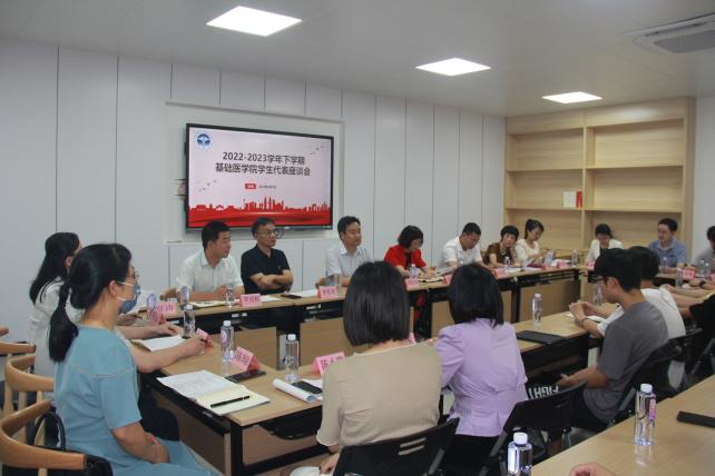 为深入落实党中央关于学习贯彻习近平新时代中国特色社会主义思想主题教育的重大部署和大兴调查研究的重要要求,更好了解广大学生对自慰A片教育教学、管理服务等方面的意见和建议,进一步提高自慰A片教学管理服务水平和教学质量,2023年6月7日下午,基础医学院于6号楼212学生活动室召开学习贯彻习近平新时代中国特色社会主义思想主题教育调研座谈会暨2022-2023学年下学期学生代表座谈会。学院领导班子、校院两级督导、教科办及学工办负责人、各学系/中心主要课程负责人和各专业年级同学代表近40人参加调研座谈会。