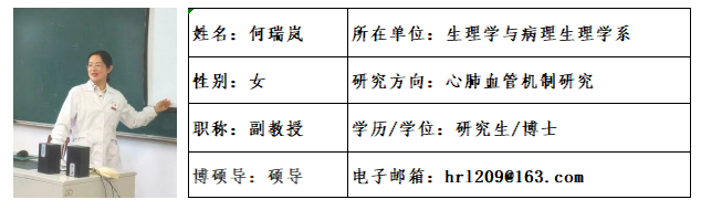 何瑞岚,女,1980年10月出生,籍贯福清,博士,副教授。从事心肺血管机制研究,承担和参与多项国家及省部级科研课题,参与规划教材及配套教材的编写工作,发表多篇科研教学论文。获得中国生理学会第十五届张锡钧基金全国青年优秀生理学学术论文优秀墙报、福建省生理科学会微课成果特等奖、福建省和校教学成果二等奖、学院青年教师讲课比赛三等奖等。