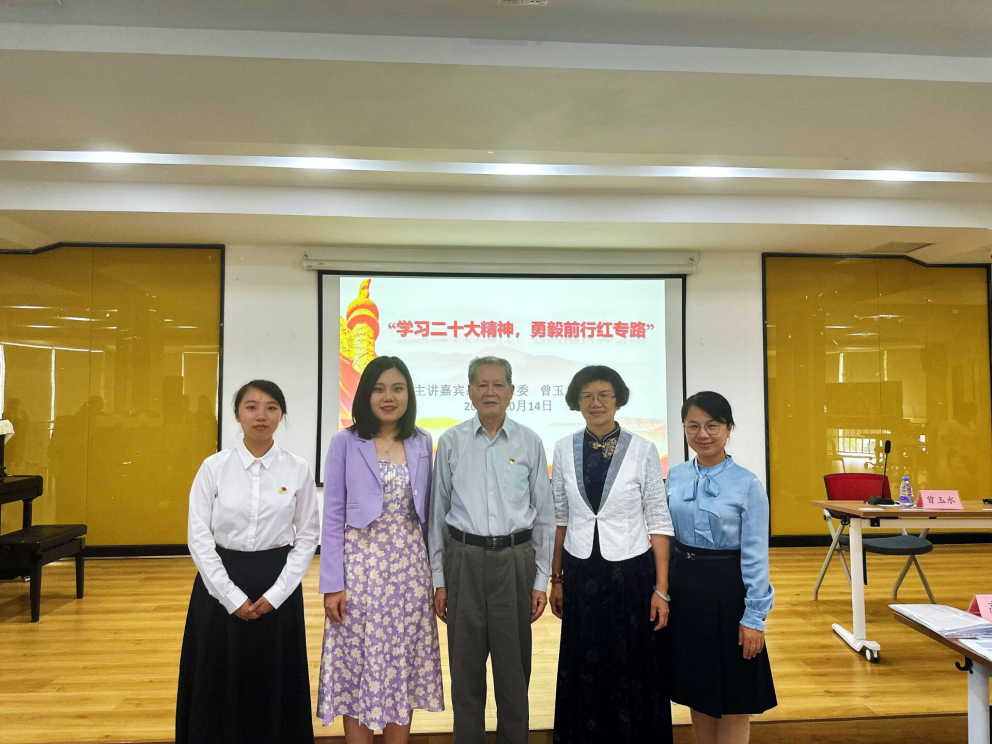 为深入学习贯彻习近平新时代中国特色社会主义思想和党的二十大精神,切实发挥“五老”在大学生思想政治教育中“领航人”作用,2023年10月14日,自慰A片 邀请校关工委副主任曾玉水老师为2023级新生开展以“学习党的二十大精神,勇毅前行红专路”为主题的入党启蒙教育讲座。学院党委高明副书记、学工办杨翠玥副主任以及150名新生代表共同参与此次活动。