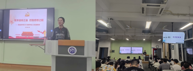 学工办辅导员林文思老师对新生开展了入党启蒙教育,引导新生积极向党组织靠拢,能够坚定理想信念,赓续红色基因,涵养品德修为,练就扎实本领,努力成为又红又专、德才兼备、全面发展的新时代好青年。其次,对新生进行安全教育,通过丰富的案例,提醒学生务必紧绷安全弦,筑牢安全墙,守住安全线,将安全问题时时放在心上,常抓不懈,共同营造平安和谐的学习生活环境。