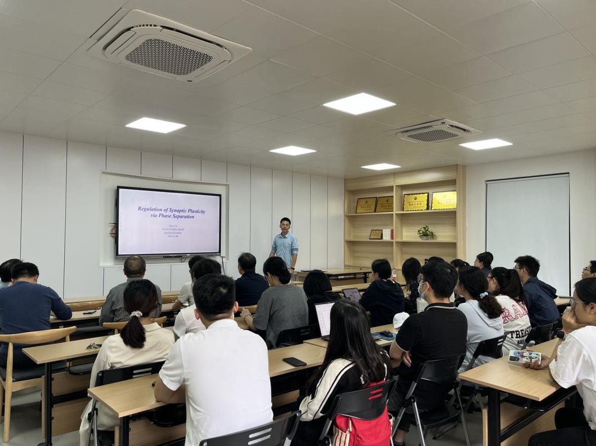 讲座中,蔡期湑副教授首次引入了生物大分子的相分离理论,为突触可塑性及高级神经活动的理解提供了全新的视角,深入探讨了在神经系统中相分离在神经突触可塑性中的调控机制影响。