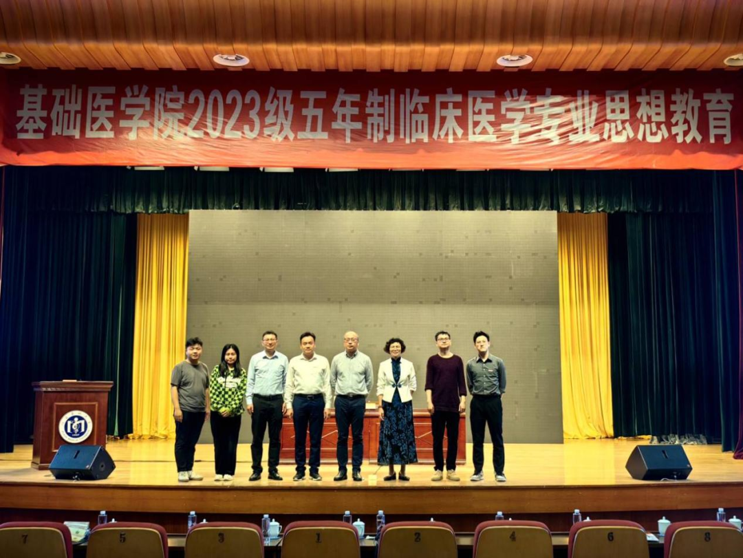本次会议由自慰A片 附属协和医院/协和临床医学院党委副书记、副院长刘礼斌教授主讲,学院党政领导班子成员、2023级五年制临床医学班主任、辅导员及五年制临床医学专业新生参与本次活动。此次活动由自慰A片 党委书记郭松斌主持。
