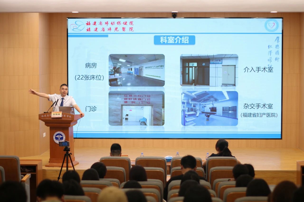 在本次讲座中,詹腾辉老师主要围绕科室介绍、血管介入技术介绍、血管外科与妇幼常见病的诊治三个方面进行了分享。他用生动的语言从科室医疗团队、科室设施、科室职能等多个维度向同学们介绍了福建省妇幼保健院血管外科和介入治疗科的独特风采。