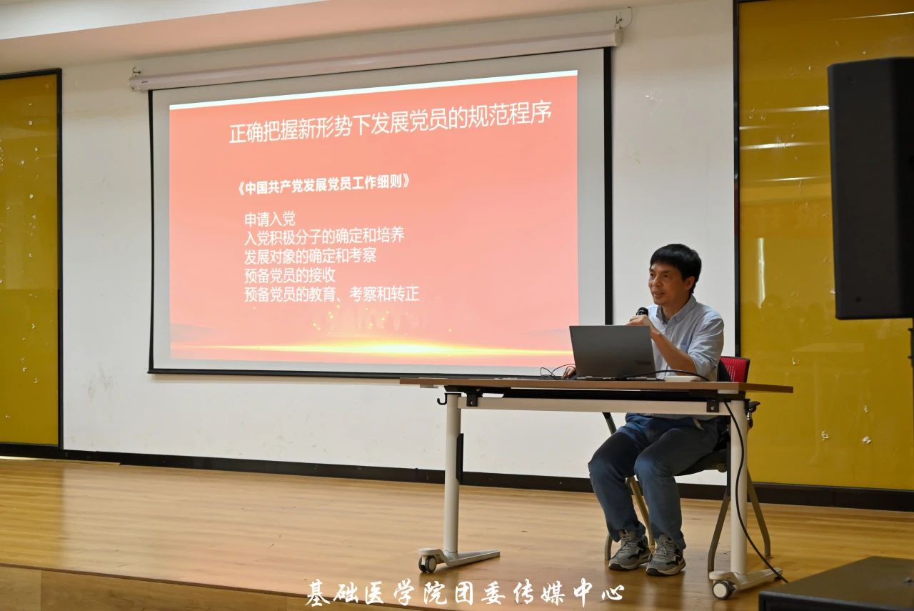 黄老师指出,发展党员全过程可分为申请入党、入党积极分子的确定和培养、发展对象的确定和考察、预备党员的接收和预备党员的教育、考察和转正等五个阶段。他结合具体案例,详细解读了每个阶段的关键节点和注意事项。他强调,发展党员工作应当坚持党章规定的党员标准,始终把政治标准放在首位,坚持成熟一个,发展一个,保证党员质量,保持党的先进性与纯洁性。最后,黄老师还结合自慰A片入党积极分子撰写的思想汇报作案例,点明撰写要点与书写格式,希望同志们能认真对待思想汇报,及时向党组织汇报近期思想和工作情况。
