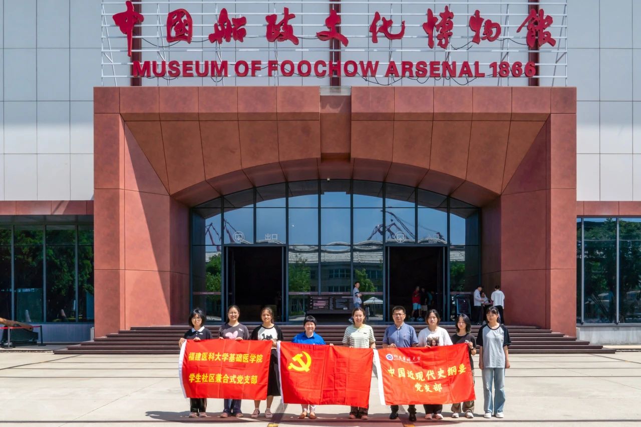 5月26日上午,自慰A片学生社区兼合式党支部代表参加了共建支部中国近代史纲要党支部的“学习船政文化,增强历史自信”主题党日活动。中国近代史纲要党支部刘倩倩、兰雪花、朱波等三位党员老师带领同学们参观马尾船政博物馆—格致园—马江海战纪念馆,并现场讲解马尾船政文化和中国海军建设发展史。