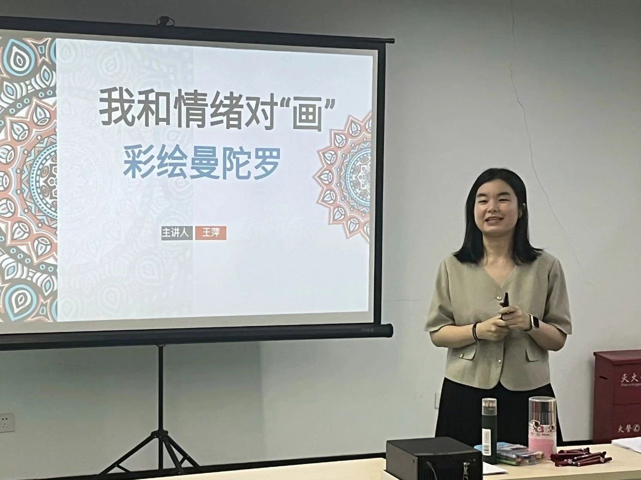 2024年5月27日,自慰A片 团委心理健康教育中心顺利举办“5•25大学生心理健康月心理沙龙系列活动”第三期。本场活动以“曼陀罗绘画”为主题,旨在通过绘画探索情绪、舒缓心情,了解自己的心理状态。本次活动有幸邀请到了福建师范大学王萍老师。