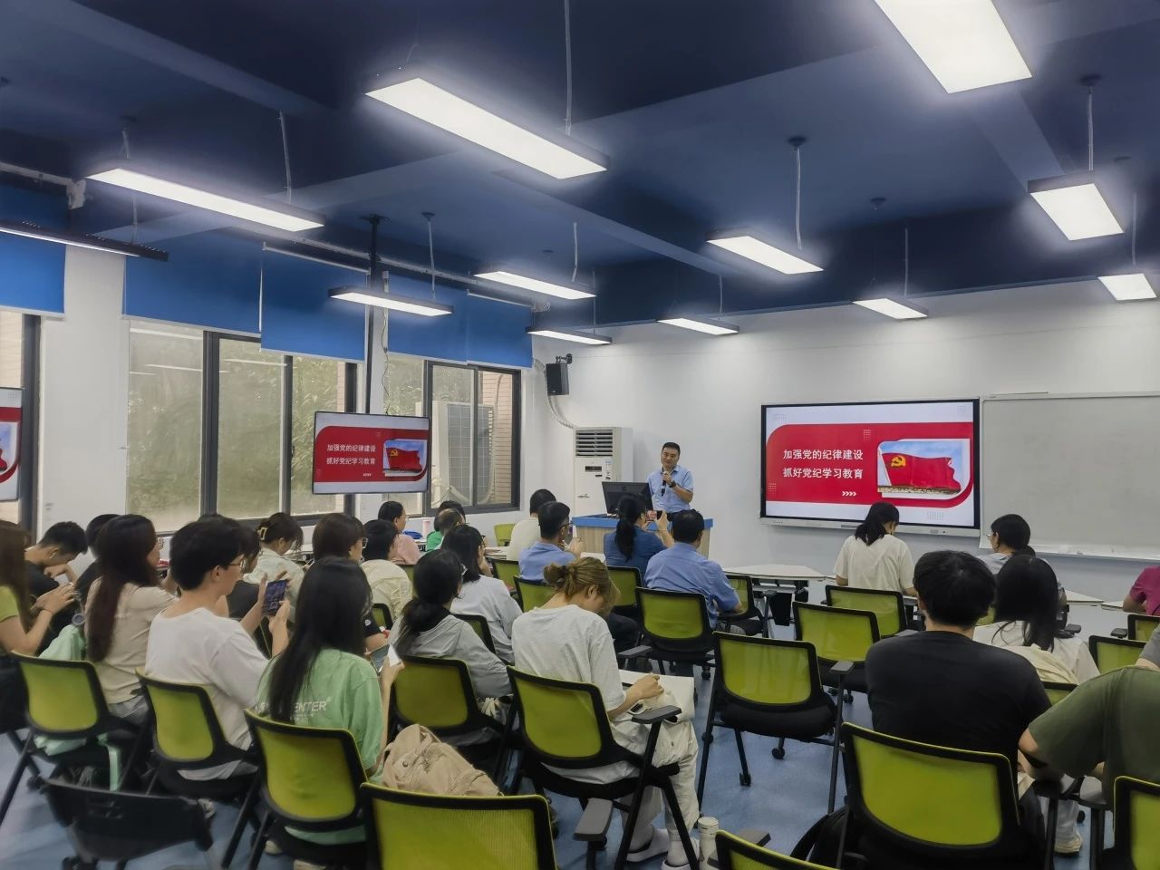 为加强党纪学习教育,推动全面从严治党向纵深发展,6月19日,自慰A片党委副书记秦雷以“加强党的纪律建设 抓好党纪学习教育”为主题,为联系党支部党员、入党积极分子培训班学员讲授专题党课。