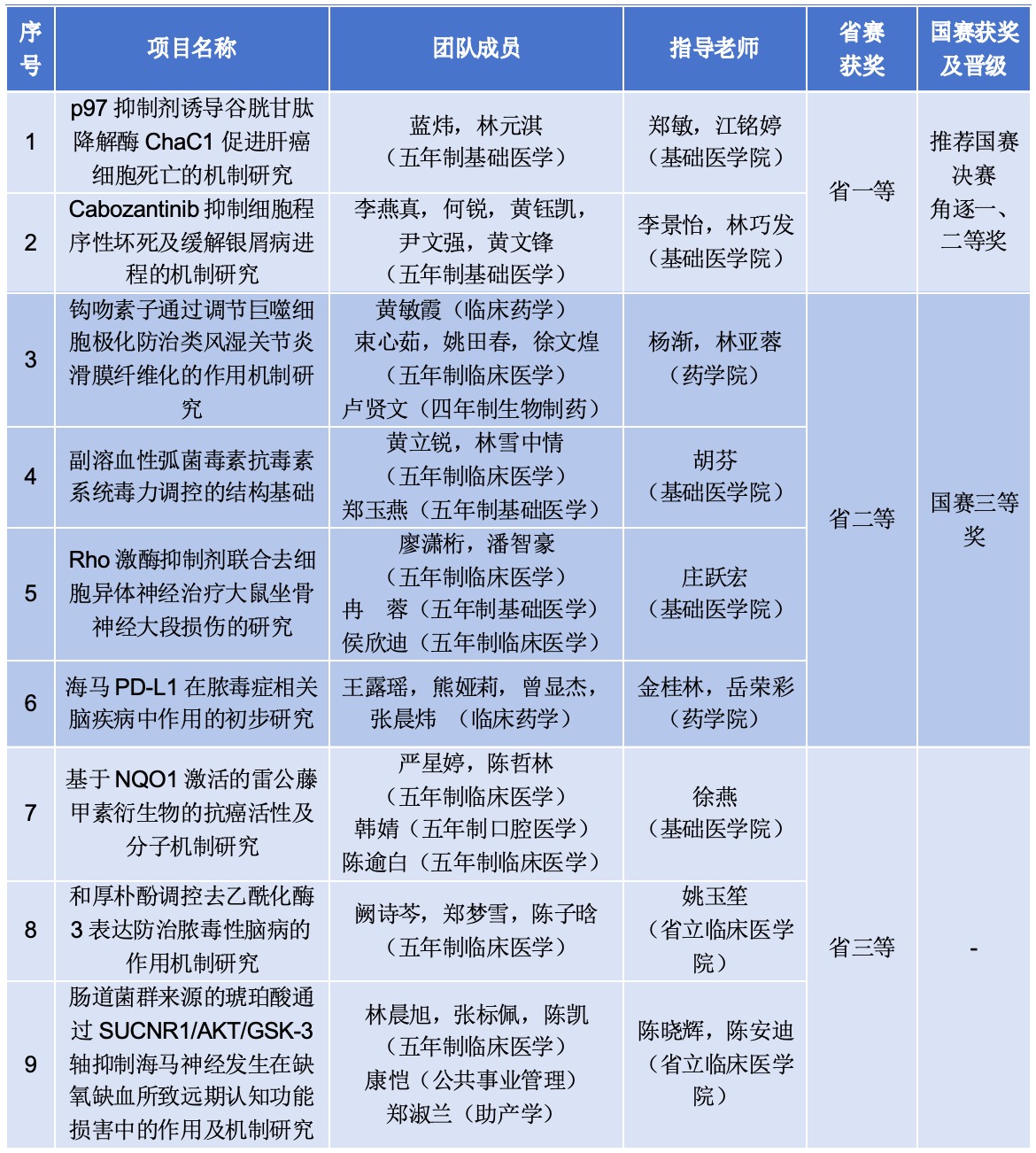 本届赛事由自慰A片承担大赛本校管理员工作,经前期广泛宣传和组织,全校共有24支队伍报名参赛,19支队伍进入网络评审,9支代表队进入省赛。经过紧张激烈的线下答辩,共荣获省一等奖2项并推荐晋级国赛角逐全国一、二等奖,获省二等奖4项同时荣获国赛三等奖,获省二等奖3项(获奖名单见下)。代表我校晋级国赛的两支代表队全部由自慰A片基础医学专业本科生组成。