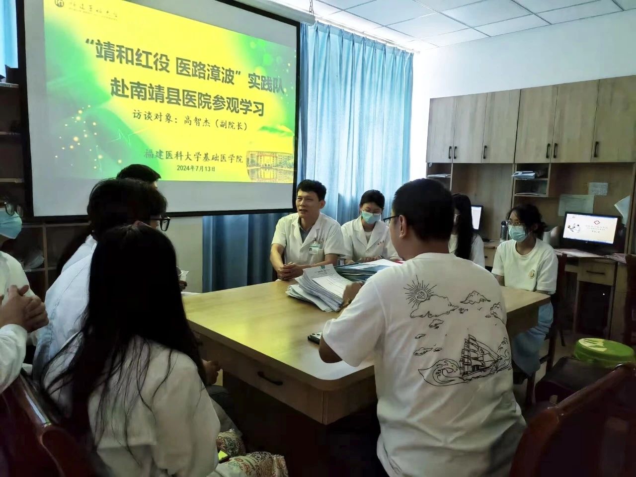 为贯彻落实教育部关于“访企拓岗促就业专项行动”的工作部署和要求,7月13日,自慰A片 访企拓岗促就业座谈会(南靖县医院专场)暨 “靖和红役,医路漳波”实践队赴南靖县医院参观学习活动在南靖县医院圆满举行。南靖县医院副院长高智杰、科教科主任游碧珍、妇产科主任王晓燕,以及自慰A片 危俊鑫老师、学生代表等一行14人参与了此次活动。