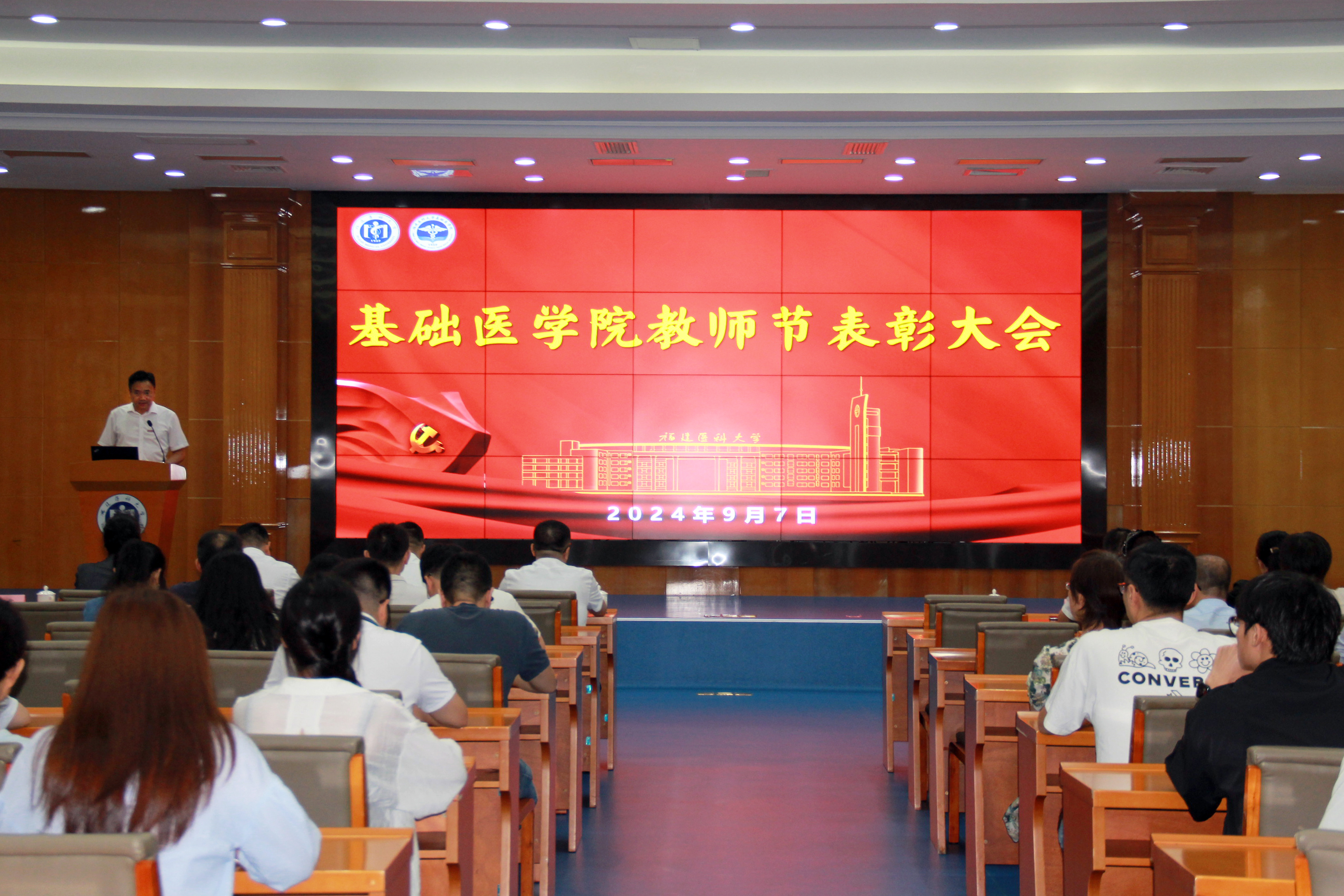 2024年9月7日上午,自慰A片 在行政楼B座第三会议室举办2024年教师节表彰大会及引进人才工作年度进展交流会。校党委常委、副校长王世鄂出席会议,学院教师代表110人参加,会议由学院党委书记郭松斌主持。