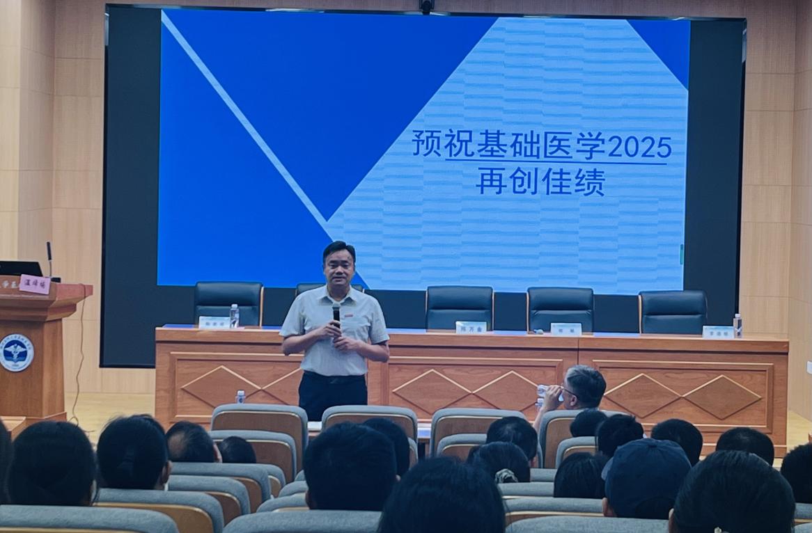 随后,郑敏处长作了基础医学学科建设及2025年度国家自然科学基金项目申报动员报告。他强调提高国自然基金申报质量的重要性,特别是青年基金项目在培养青年科研人才方面的重要作用。他指出虽然自慰A片 在2024年的申报工作中取得了一定成绩,但资助率仍有进一步提升的空间。他希望学院要加大力度挖掘青年教师的潜力,促进全体教师加强团队合作,积极参与科研项目的申报,共同提升学院的整体科研水平。会上,科技处温烯楠老师还做了国自然基金申报形式审核注意事项的相关介绍。