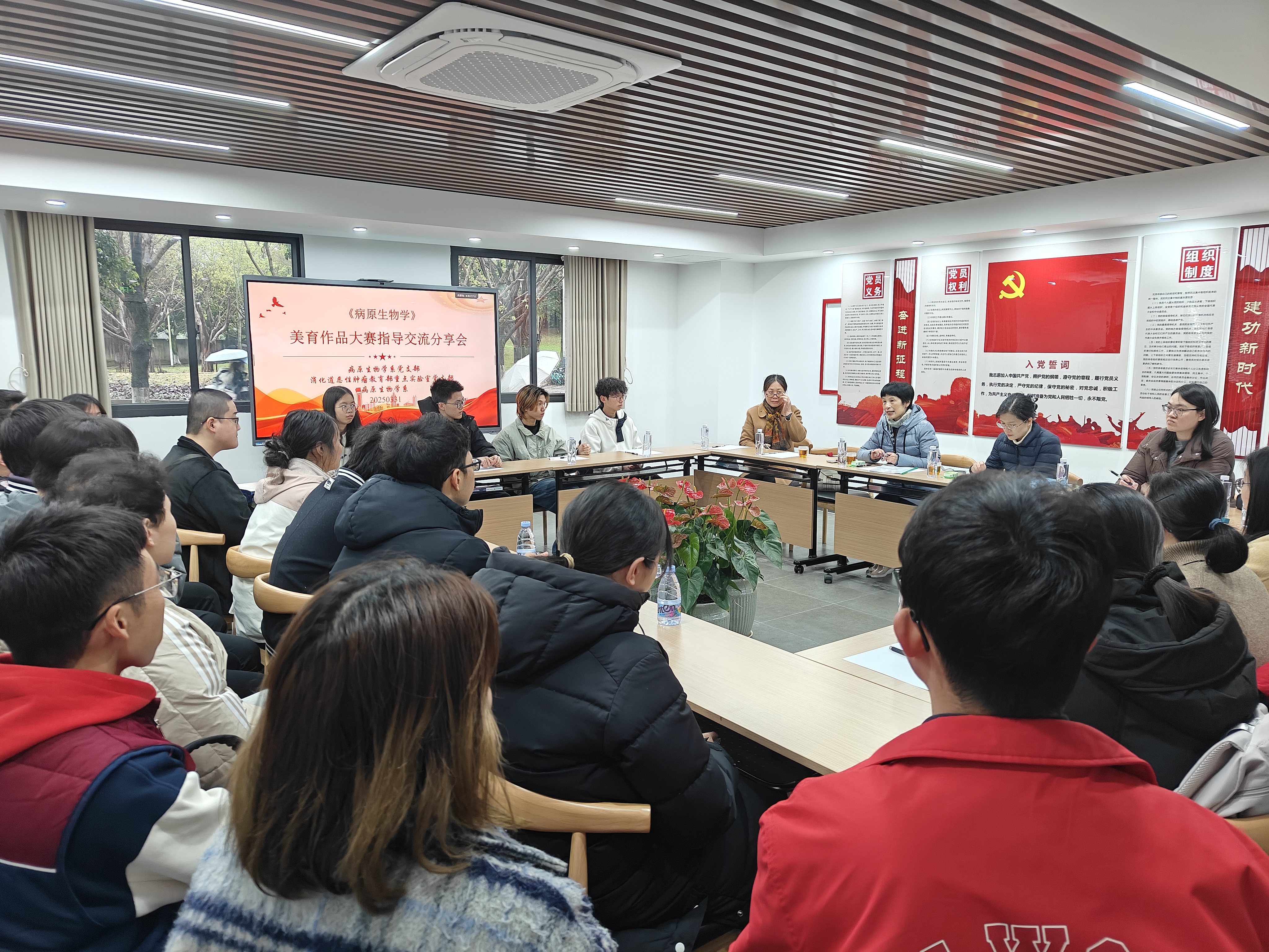 病原生物学系教师党员,围绕日前征集的“美育润心 科普筑梦”主题病原生物美育作品,通过线上线下方式与学生展开深入交流。学系教师通过案例分析,鼓励学生结合专业特色,运用显微摄影、病原模型制作、科学插画、短视频、漫画、剧本杀等新颖形式,融合人工智能技术,积极践行“科普中国高校行”行动与“美育浸润计划”,将病原生物学知识转化为通俗易懂的科普作品、美学作品。