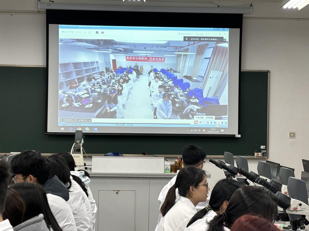 本次实验课是推动优质教育资源跨地域共享的一次创新实践。课堂上,东西部学子虽相隔千里,却在“云端”同步进行显微镜下观察组织学切片,并借助先进的虚拟仿真实验项目和网络平台,共享并深化了对生殖系统相关知识的理解与掌握,实现了融合东西部教育资源的理论与实践的完美结合。