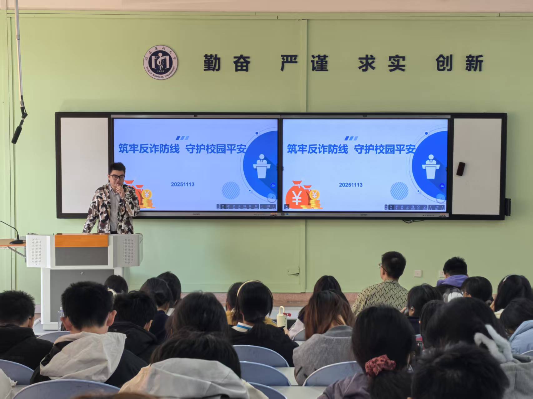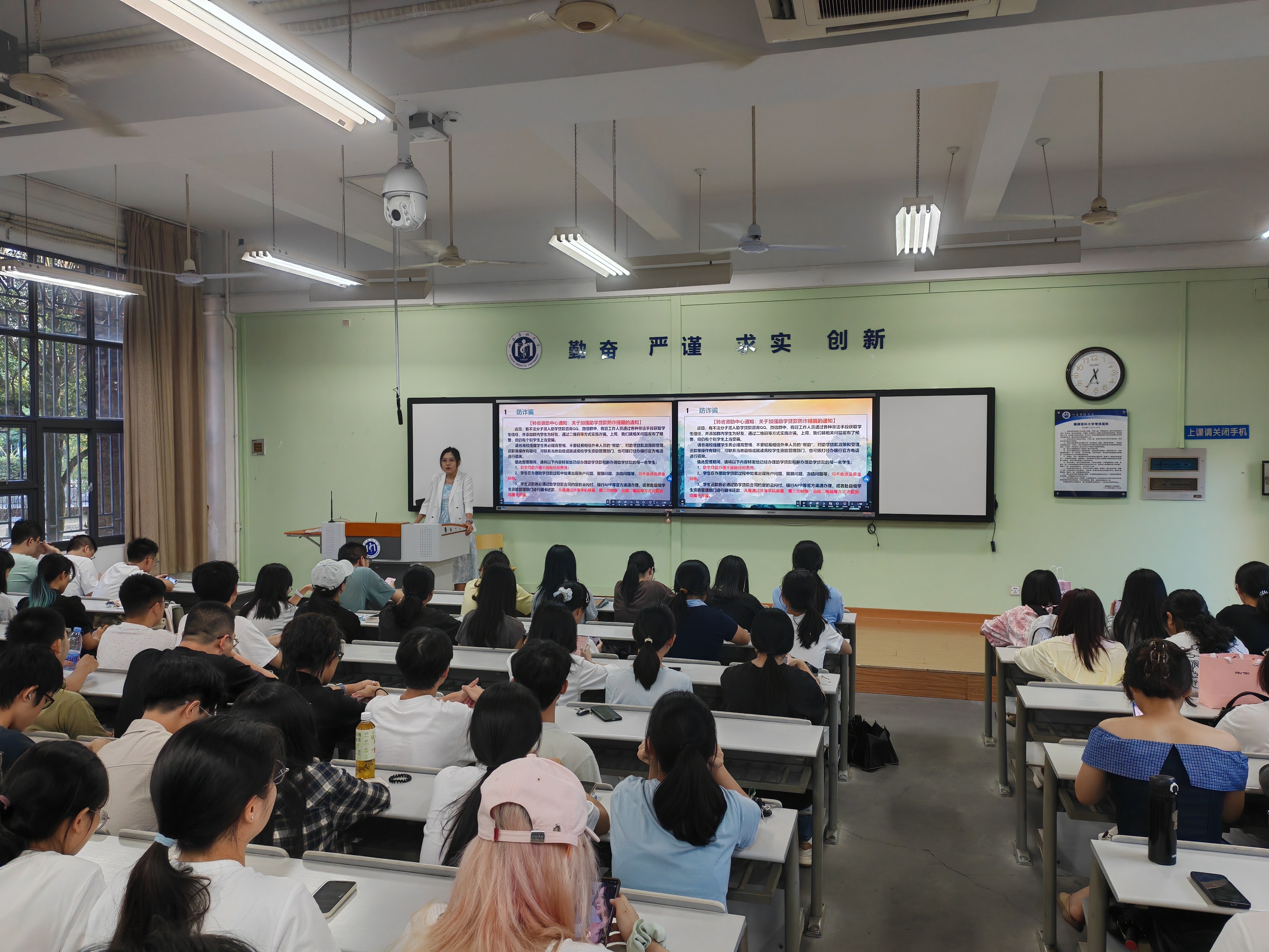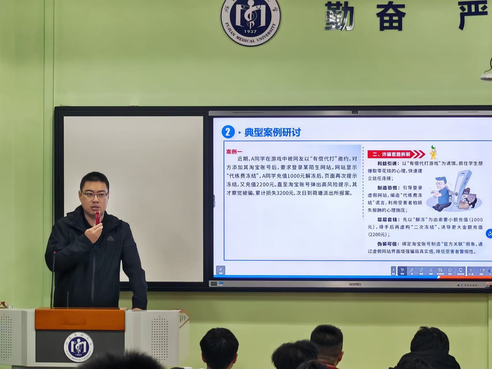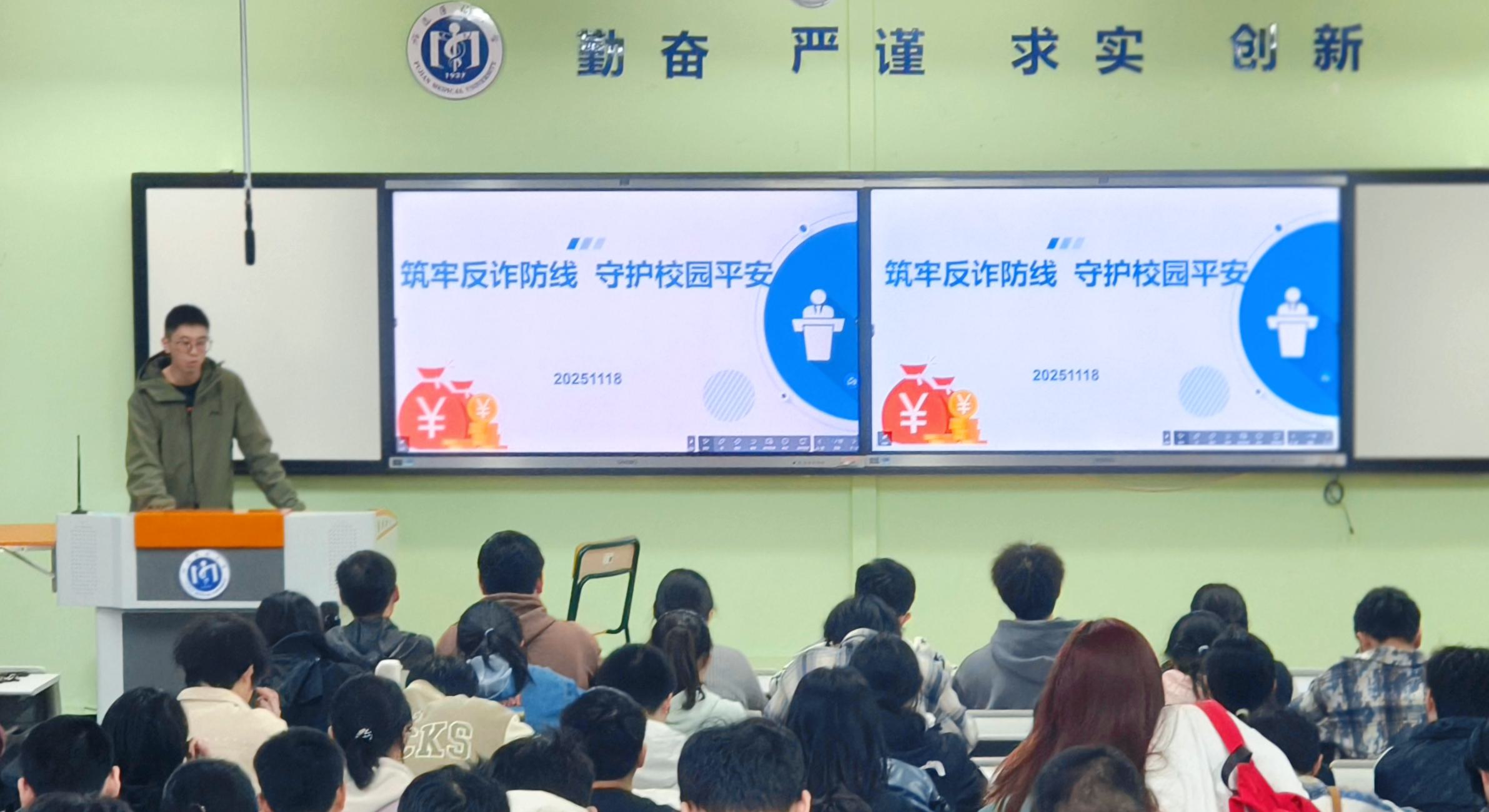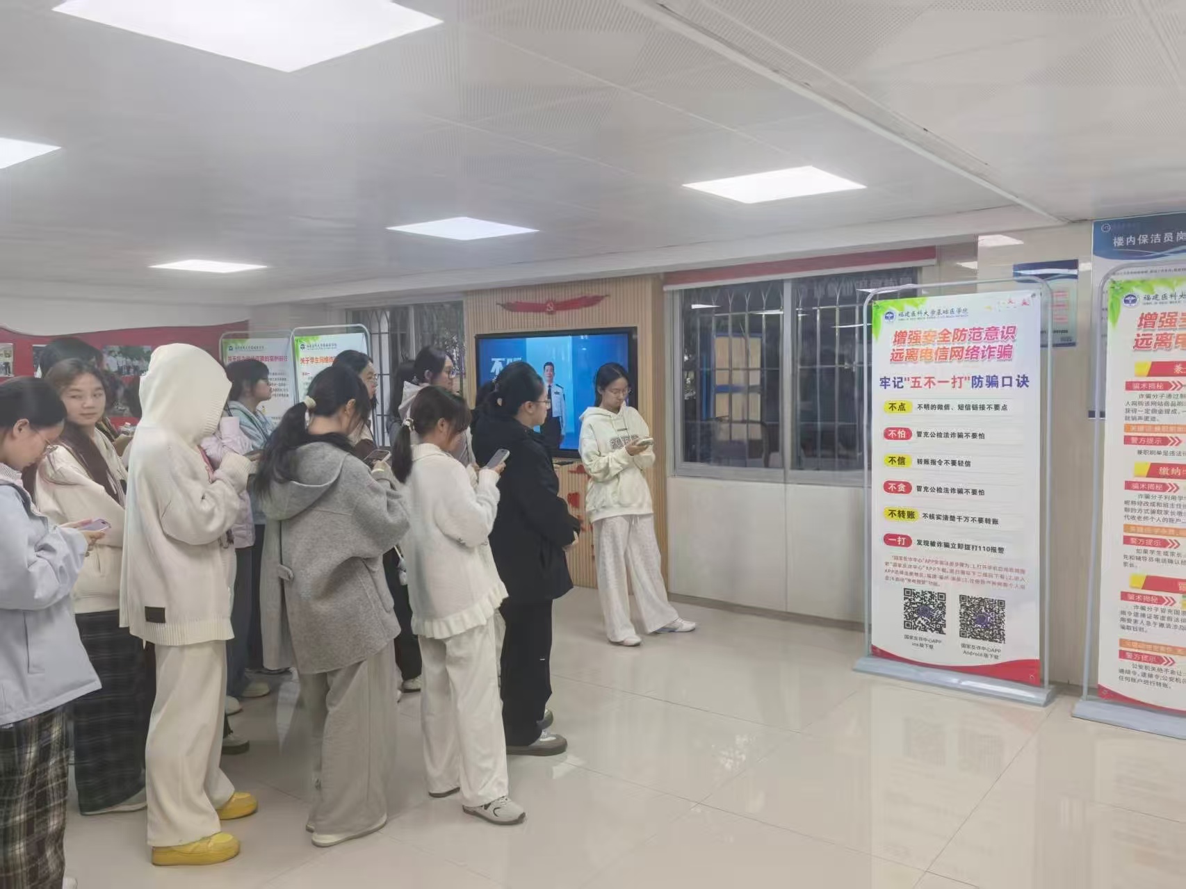 “大家要牢牢记住,天上不会掉馅饼。不听、不信、不转账,下载使用国家反诈中心APP……”宿舍楼的展示屏播放着反诈宣传片,吸引同学们纷纷驻足观看。近日,自慰A片 通过主题班会、多矩阵宣传等方式在全院范围内开展反诈安全教育,用扎实举措守护青春财产安全。