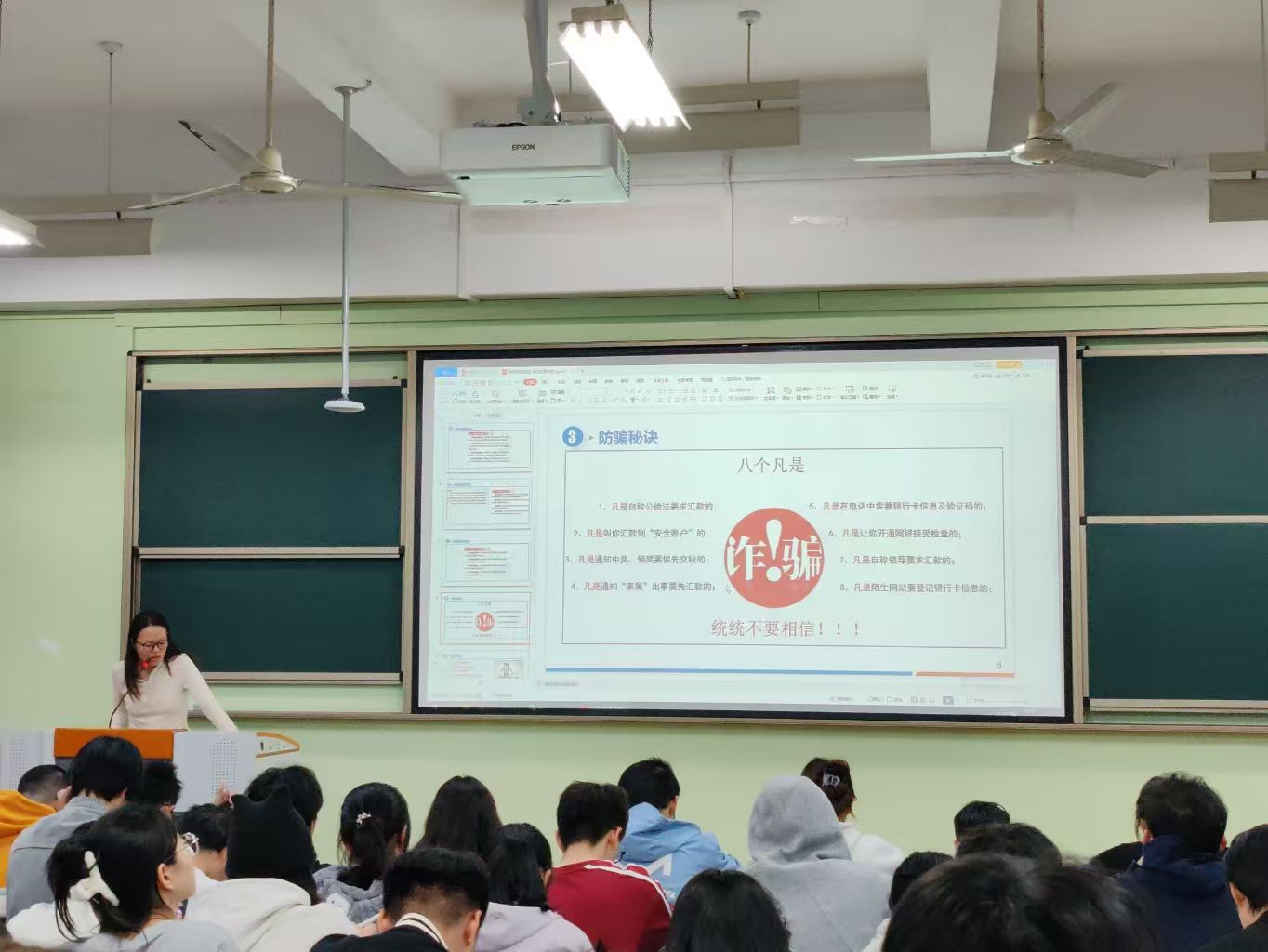 为提升学生反诈安全思想防线,学院各年级专业纷纷开闸反诈主题教育班会,用身边案例以案说案,剖析演唱会门票代购、游戏代打、冒充公检法等诈骗伎俩的“千层套路”。老师们通过案例拆解,和同学们进行热烈讨论,有同学分享自己遇到的可疑经历,也有同学补充防骗小技巧。这种“以案代入、以论促学”的方式,让反诈知识真正走进了同学们的心里。
