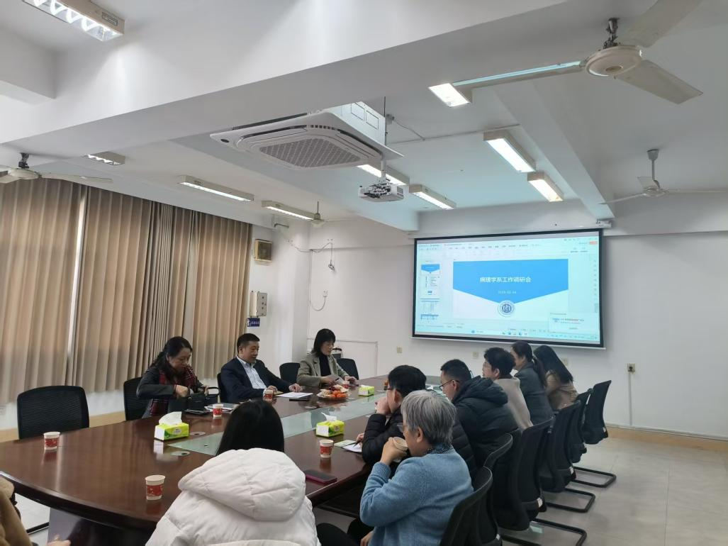 2026年2月4日,林旭校长带队深入乌山校区自慰A片 病理学系召开专题调研会,围绕学科平台建设、科研创新能力提升开展指导。校党委黄爱民副书记、自慰A片 张秋玉副院长陪同,病理学系及病理诊断中心负责人、教师代表参会。